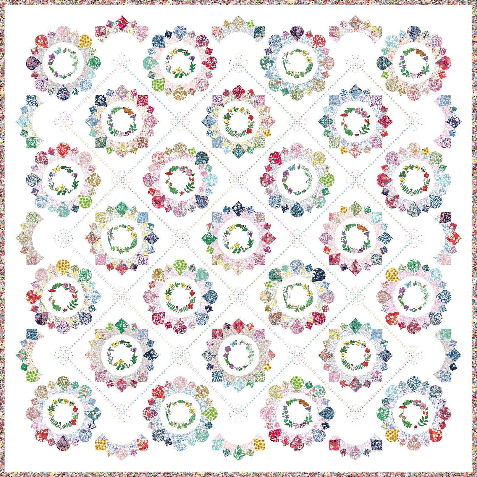 Alice's Country Diary Quilt is a breathtaking fusion of English Paper Piecing (EPP), hand embroidery and quilting, inspired by the beauty of the countryside. Featuring 25 unique embroidery designs, this quilt showcases delicate wildflowers and insects, framed by luxurious Liberty Tana Lawn fabrics – though any quilting fabric can be used.