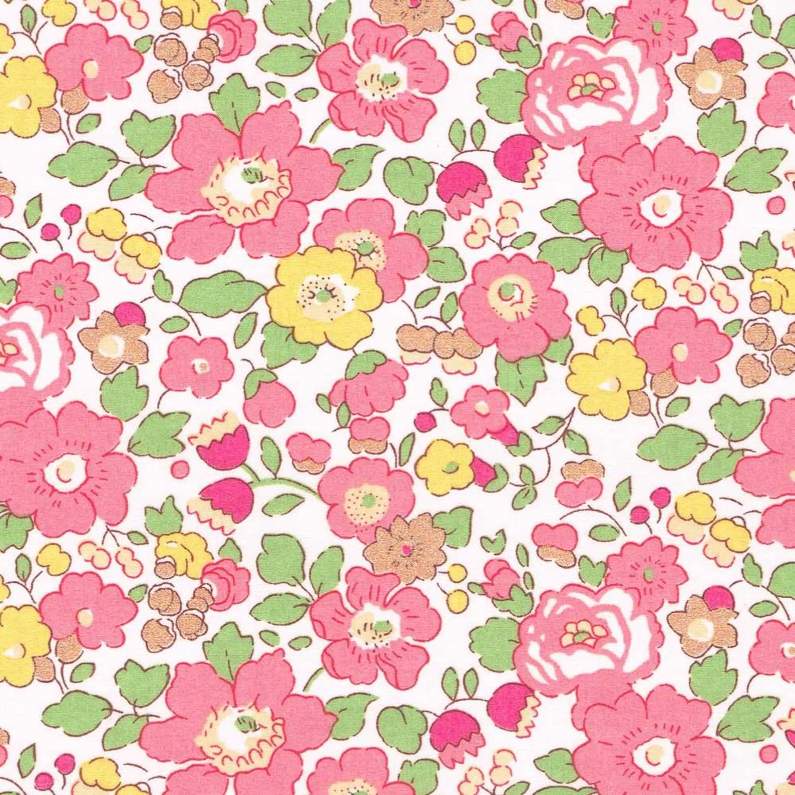 Betsy is made of up tightly knitted florals and was created for Liberty Fabrics in 1933. It was designed by the enigmatic DS, whose work makes up many favourite Liberty patterns. Betsy has been part of the Classics collection since 1982.
